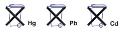 - Cadmium Hg = Batterie enthält mehr als 0,0005 Masseprozent Quecksilber.